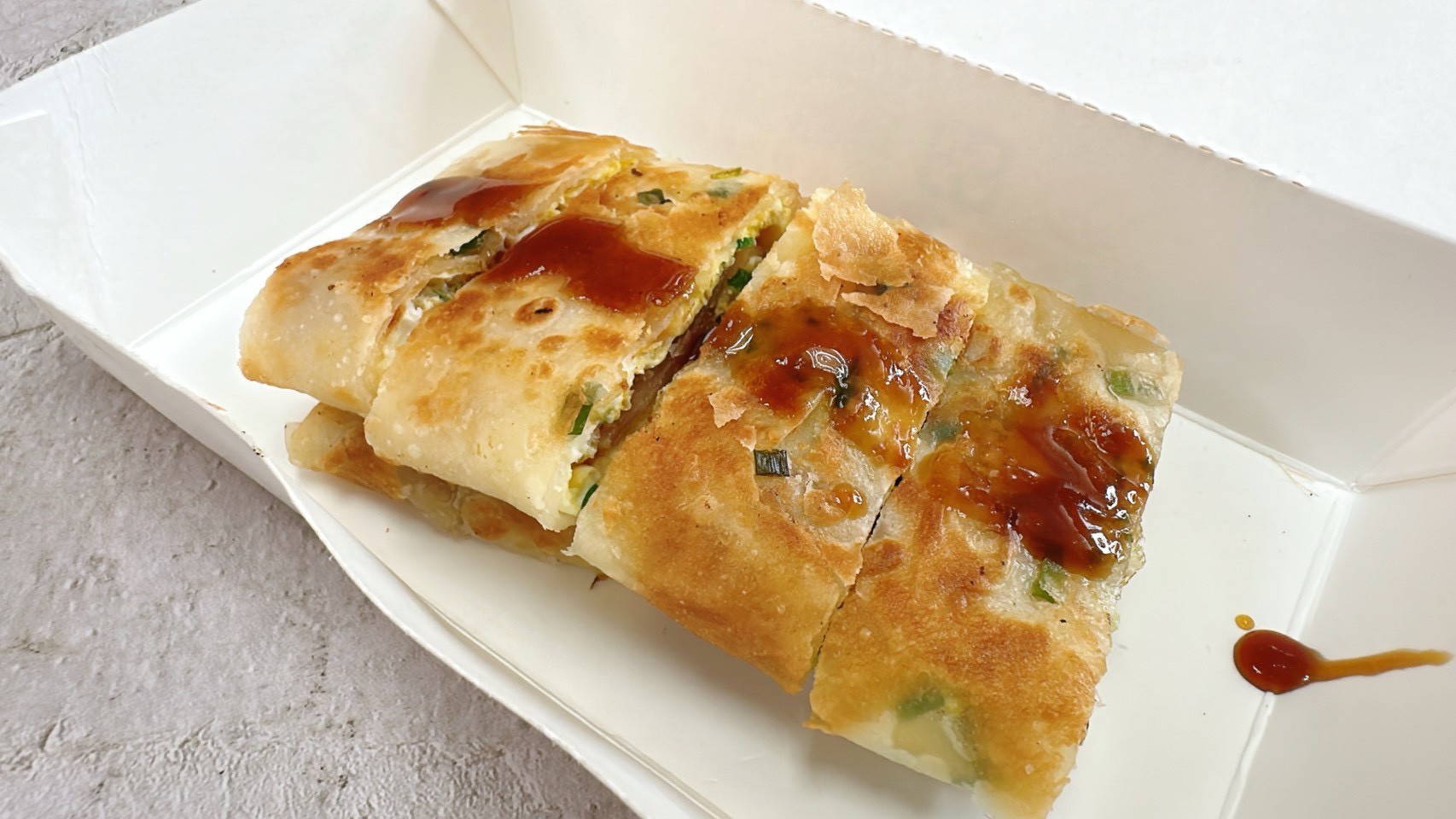 外皮煎得金黃酥脆,咬下去「卡滋」作響,內層仍保有蛋香與餅皮的柔軟層次、酥而不硬、脆而不油,